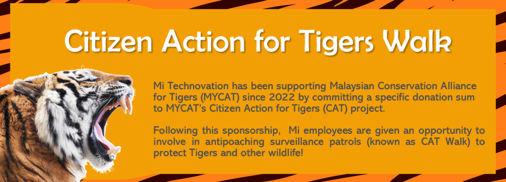 自 2022 年,正齐集团一直支持Malaysian Conservation Alliance for Tigers (MYCAT),为保护马来亚老虎项目提供专项捐款。在集团首席执行官,胡光荣先生的慷慨赞助下,一共三组的员工(即 CAT Walk志愿者)在 MYCAT 专业人员的带领下参加了反偷猎巡逻。
